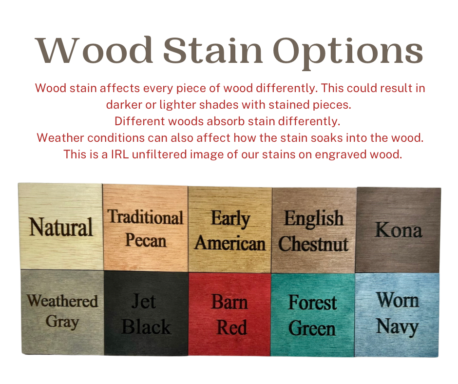 Keep a memory, note, saying or image from a loved one forever with these engraved plaques. These measure 5x7” laser engraved on wood. Backer stays natural while the frame can be stained with the color of your choice.