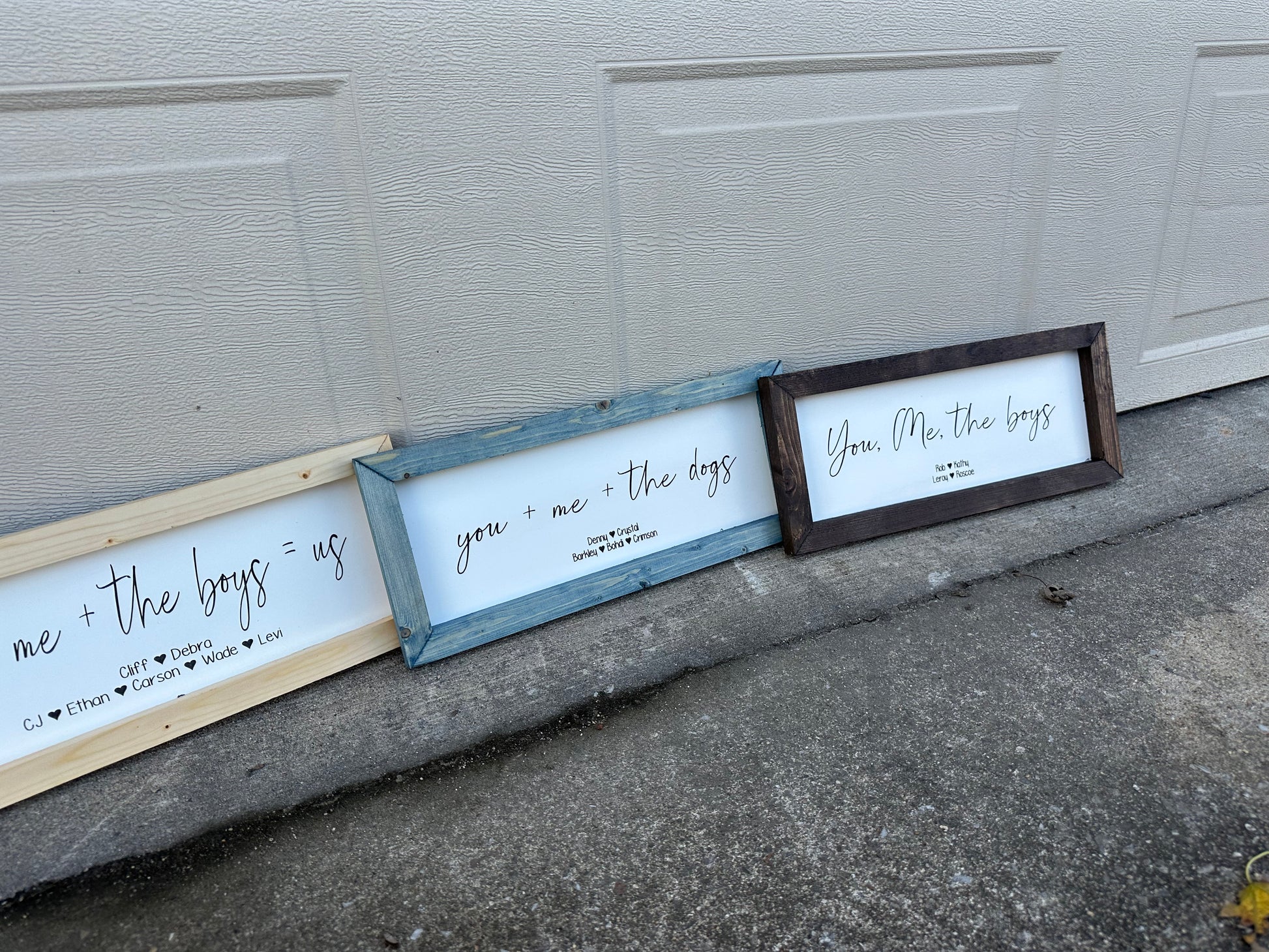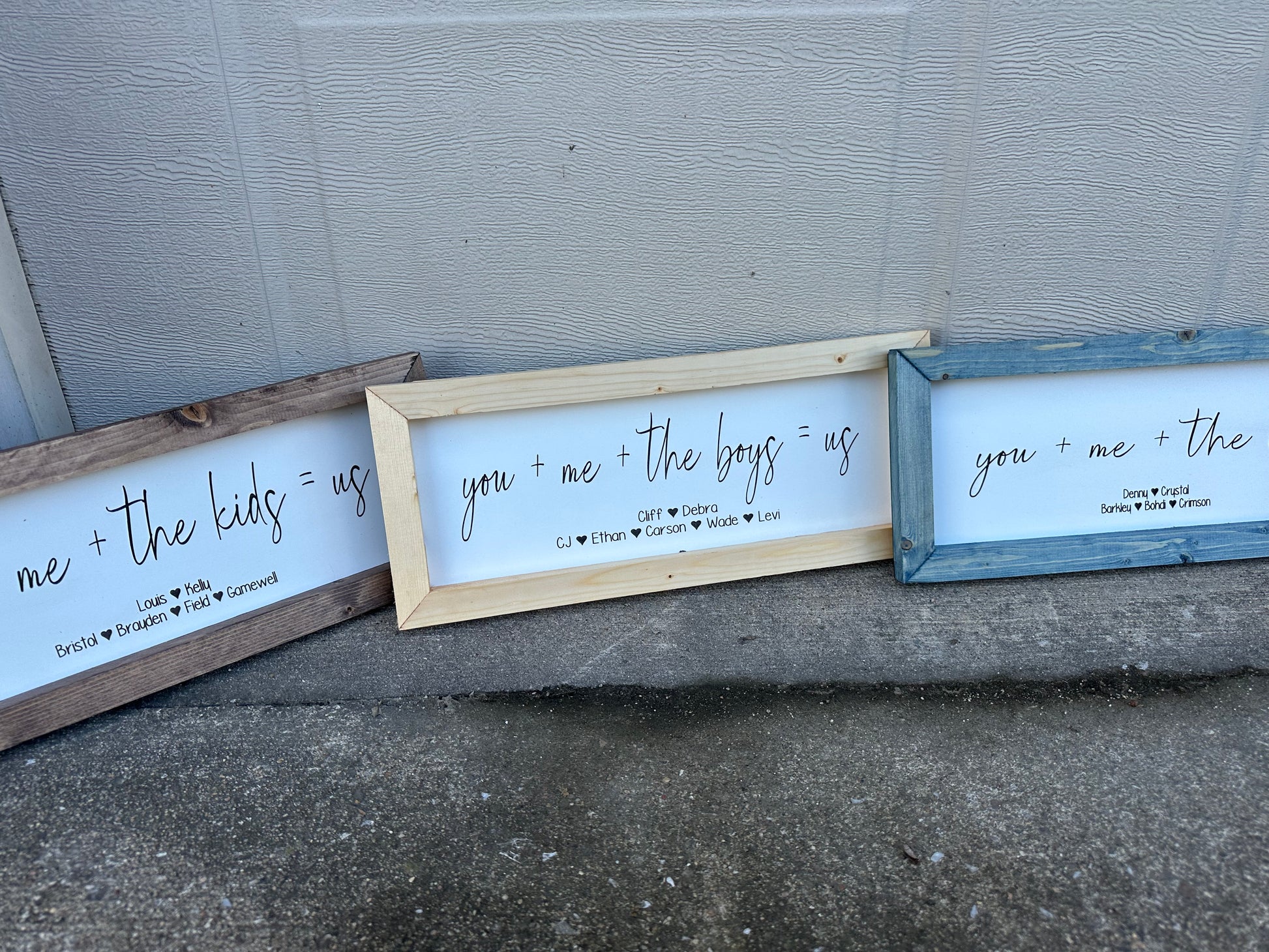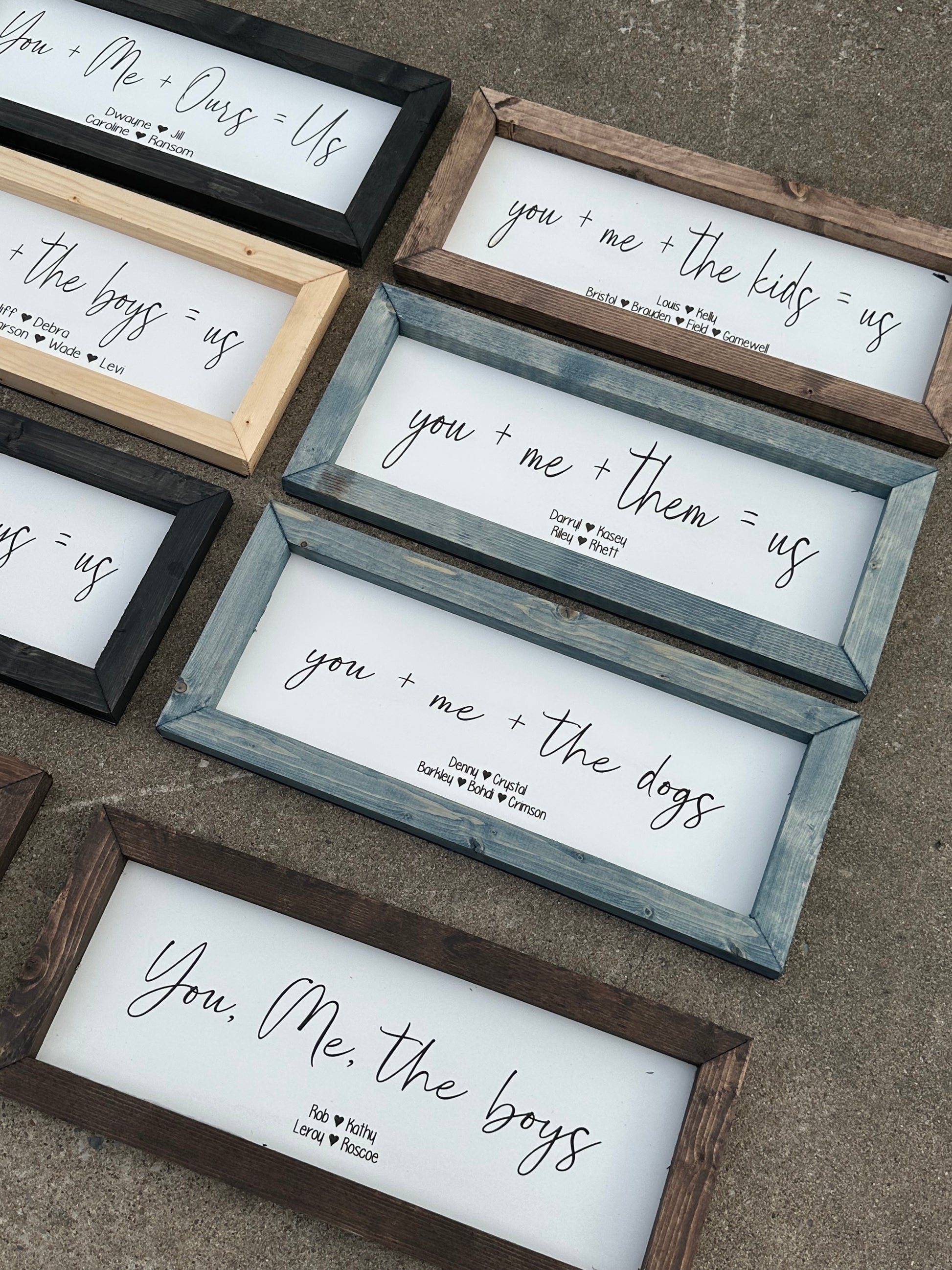 • Adults/parents names are above the children’s names. Can have as many names as needed. Backer stays white. Frame can be stained any color from stain chart!